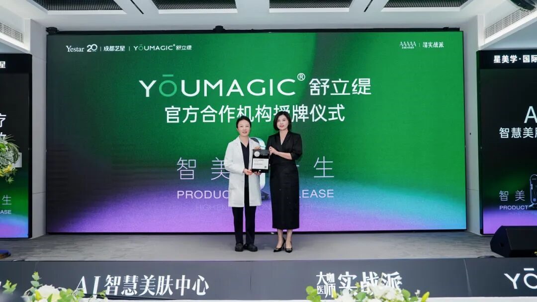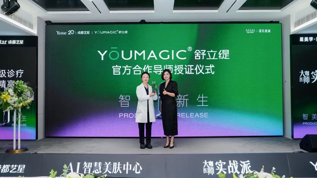 依托国家5A级医美医院专业实力及抗衰领域顶尖大咖医师团队资源,成都艺星被正式认证为“YOUMAGIC舒立缇官方合作机构”;成都艺星杨海皎院长被认证为“YOUMAGIC舒立缇官方合作导师”。此次双认证标志着双方战略协同的深度落地,将共同推动美容皮肤领域舒适抗衰的行业标准升级。