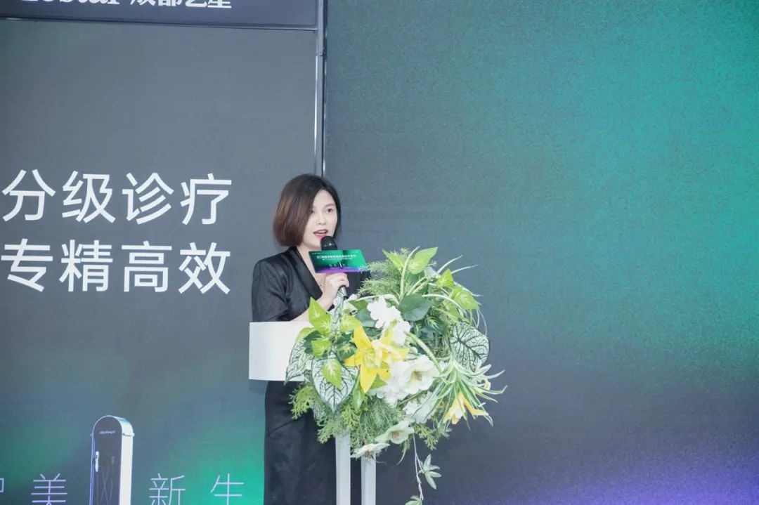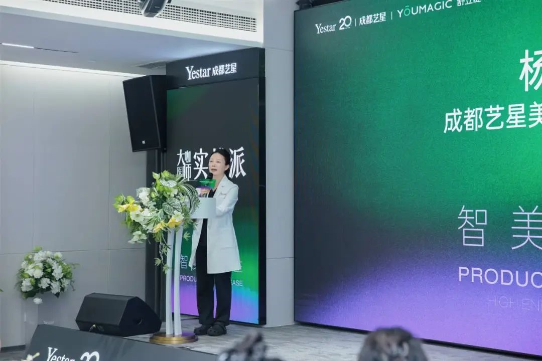 成都艺星美容皮肤科技术院长杨海皎为本次发布会致开场词。杨院长表示,YOUMAGIC舒立缇作为国产高端射频技术的引领者,其精准能量调控与舒适化体验,完美呼应我院“AI智慧美肤中心”创新的“5C舒适抗衰技术”理念。相信通过尖端设备与专业技术的强强联合,必将最大化发挥设备效能,为求美者带来更卓越的抗衰体验与效果,共同开启科技抗衰新时代!