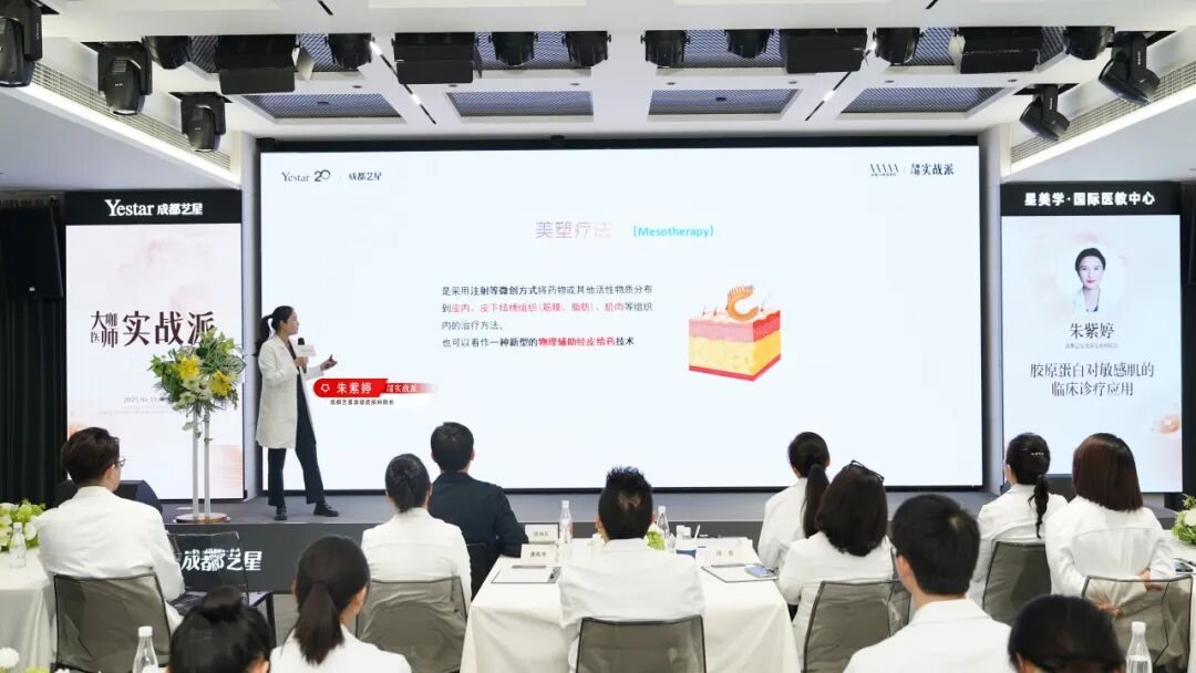 成都艺星美容皮肤科院长朱紫婷进行《胶原蛋白对敏感肌的临床诊疗应用》课题分享。