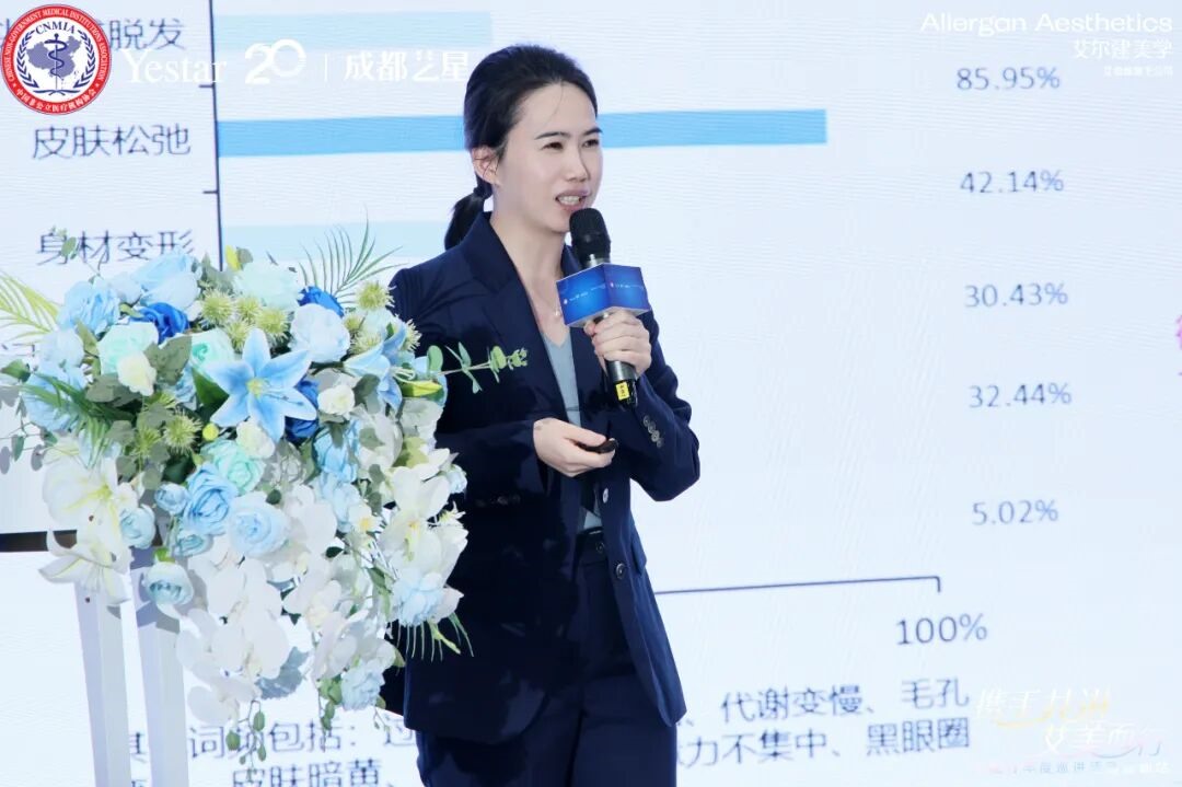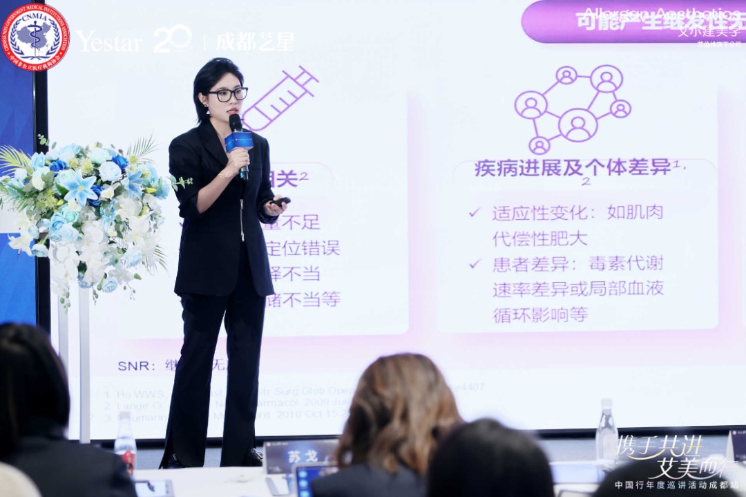 成都艺星美容皮肤科院长朱紫婷率先开讲,以《肉毒毒素改善肤质-皮肤重塑的循证机制与临床应用》为题,深入剖析了肉毒毒素在改善肤质、促进皮肤年轻化领域的科学依据与临床实践。她结合翔实的循证医学证据,阐述了肉毒毒素在皮肤微滴注射技术中的应用原理与显著效果,并进一步分享了肉毒毒素在全面部治疗中的综合策略与宝贵经验,为临床医生提供了超越传统适应症的新思路与可靠方法,展现了成都艺星在皮肤美容领域的前沿探索深度。