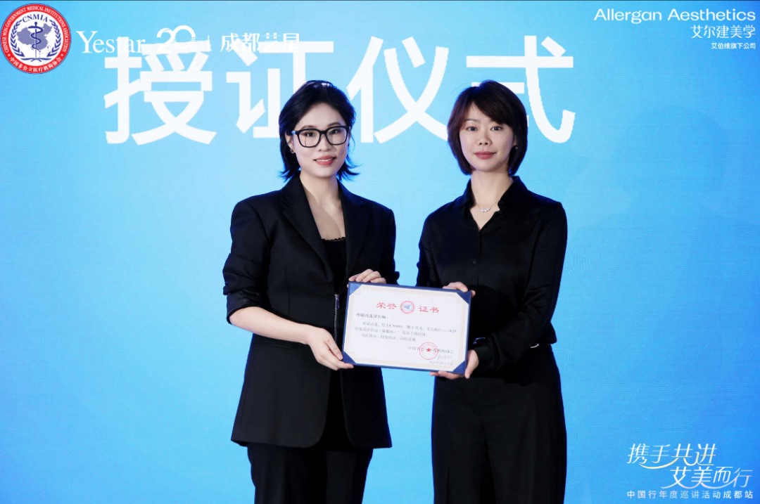 授证仪式环节,艾尔建美学销售副总监程亚西女士先后为成都艺星美容皮肤科院长朱紫婷、成都艺星美容注射中心技术主任张萍颁发荣誉证书——中国非公医协年度巡讲活动 特聘讲者。朱院表示,本次巡讲展现了严谨的学术精神和专业的学术水平,为提升医生技术和学科理念提供了一个交流学习的平台。张萍主任认为,成都艺星始终坚持回归医疗本质,以技术优势带动学科进步,最终促进行业的良性发展,为求美者提供安心、安全的变美服务。