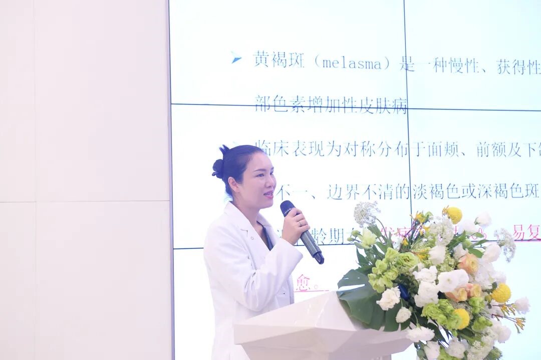 接下来是成都艺星皮肤科院长朱紫婷女士分享《杏枝山SCA3.0在炎性黄褐斑的临床应用探索》,她讲述了目前炎性黄褐斑的发病机制与病理特征,SCA3.0对炎性黄褐斑的多维治疗路径以及临床案例展示。