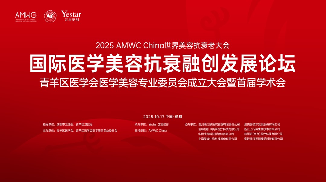 在全球医美发展浪潮奔涌、科技革命重塑行业格局的今天,一场链接全球智慧的学术盛宴即将于10月17日在“医美之都”成都重磅启幕。由成都市卫健委、青羊区卫健局指导,青羊区医学会医学美容专业委员会主办,Yestar艺星整形倾力承办的“2025 AMWC China世界美容抗衰老大会”国际医学美容抗衰融创发展论坛--青羊区医学会医学美容专业委员会成立大会暨首届学术会”,即将汇聚全球医美智慧,围绕 “科学融创” 理念,书写行业高质量发展的全新篇章。