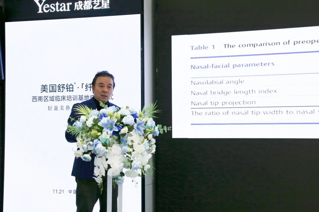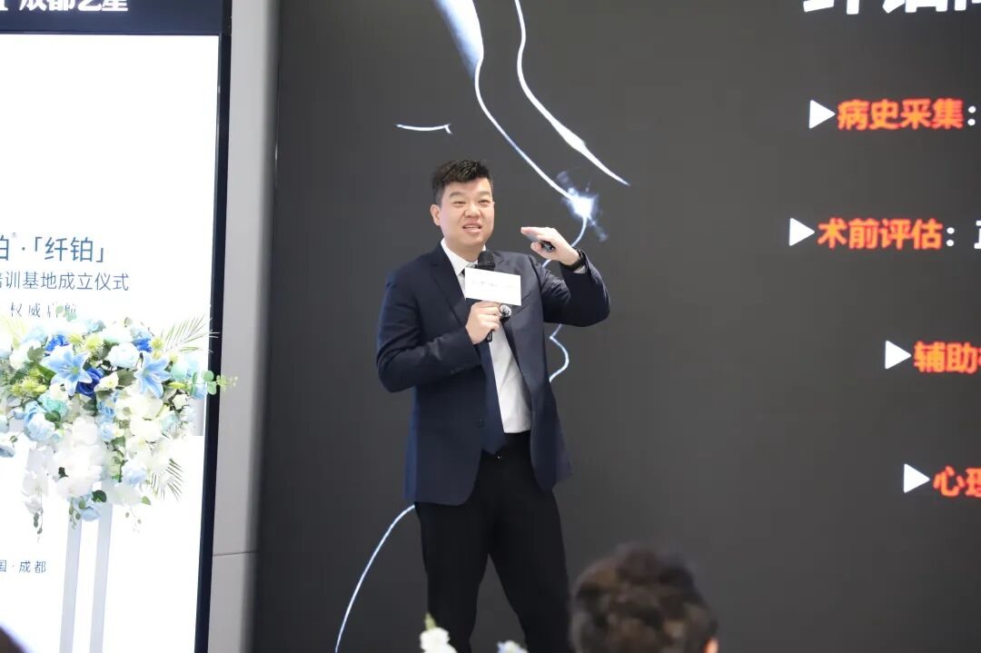 会议伊始,美国舒铂市场部经理Danni在致辞中高度肯定了成都艺星在鼻整形领域的临床实力与学术贡献。她指出,成都艺星长期致力于高难度鼻修复与个性化鼻综合手术的技术探索与创新。此次舒铂将“西南区域临床培训基地”落地成都艺星,正是基于其在专家团队建设与前沿技术实践方面的综合优势。期待双方以此为契机,共同推进鼻整形技术的规范化发展与临床转化。